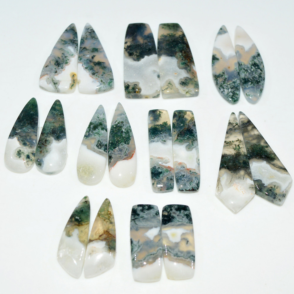 8 Pairs 160 Cts Natural Green Moss Agate Cabochon Gemstone Pair Lot For Silver Jewelry 30x9 16x9mm 30x9 20x10mm #17573