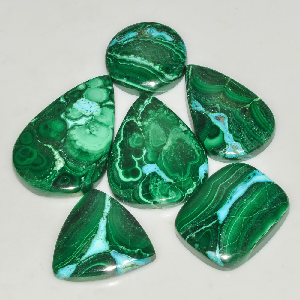 6 Pcs 262 Cts Malachite Gemstone Lot Natural Crystal For Healing and Reiki 35x25 20x20mm #18084