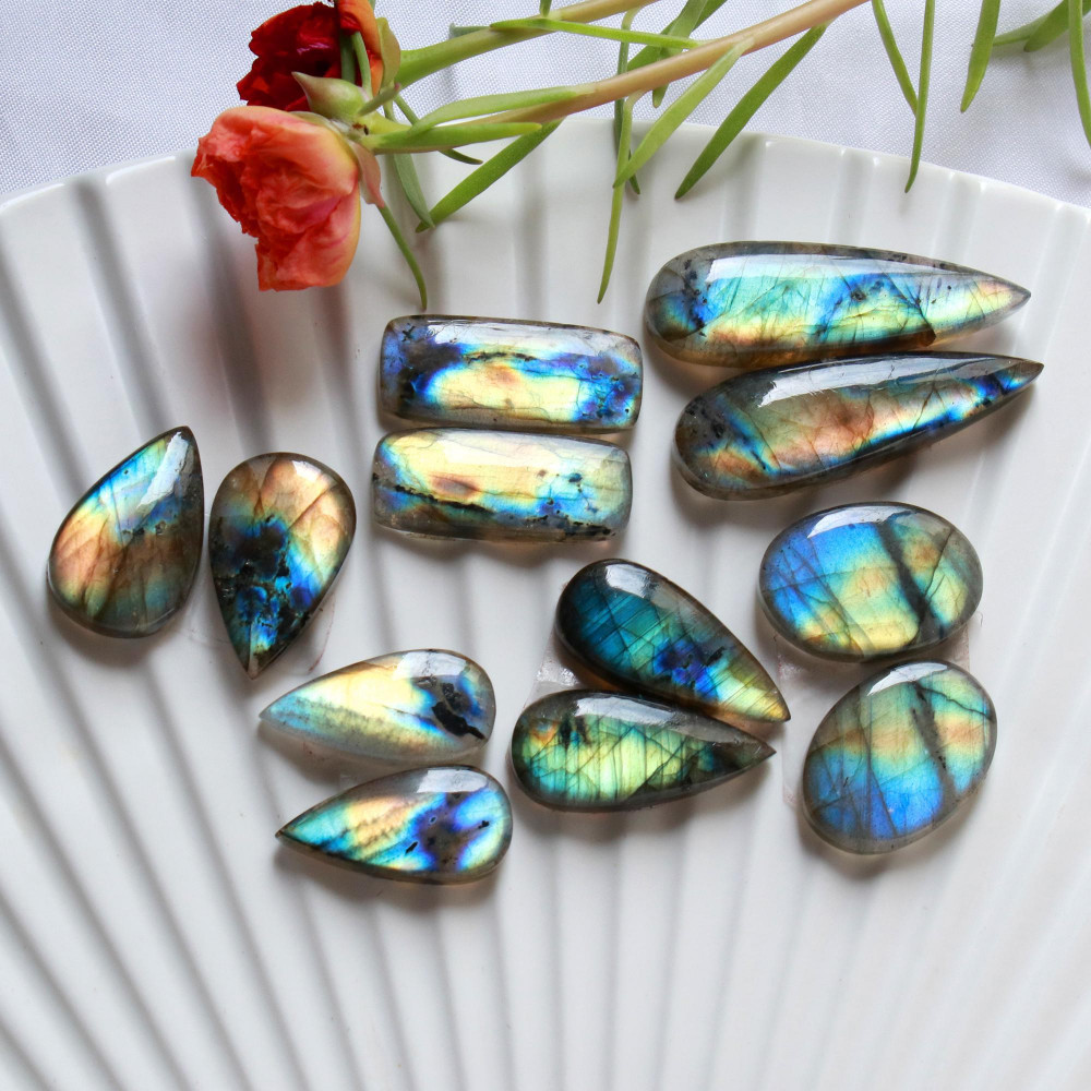 6 Pairs 173 Cts Natural Labradorite Cabochon Pair For Dangle Earring Labradorite Loose Gemstone Lot For Jewelry Making 30x14 15x15mm #15808