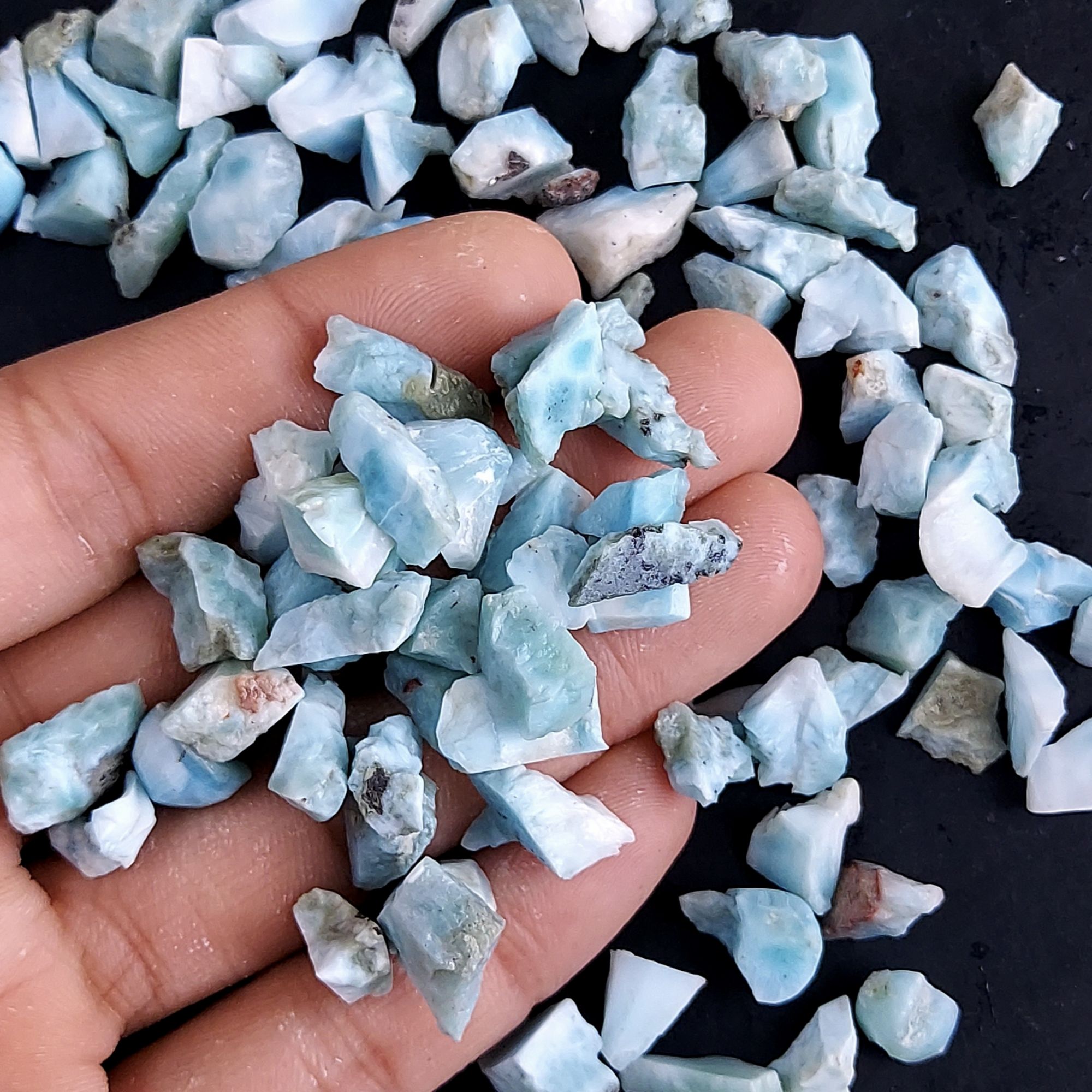 129Pcs 504Cts Natural Blue Dominican Larimar Raw Rough Gemstone Unpolished Crystal Chunks Lot 8mm #2477