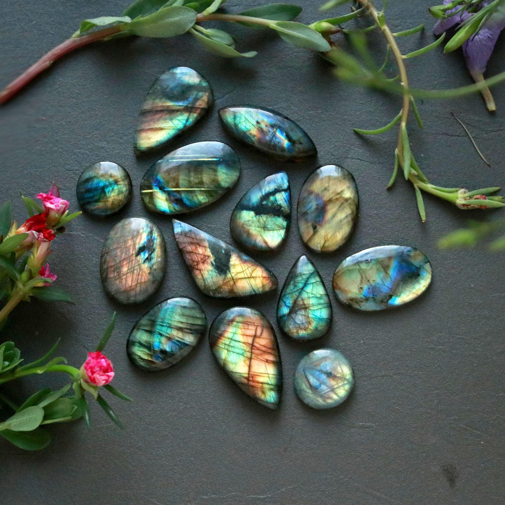 Discover the beauty of Labradorite with this premium cabochon gemstone lot. These natural, hand-polished stones display a captivating play of colors, known as labradorescence, with shades of blue, green, and gold. Ideal for jewelry designers, artisans, and crystal enthusiasts, each piece is unique in shape and pattern. Perfect for rings, pendants, earrings, or metaphysical use. Add these enchanting gemstones to your collection today!