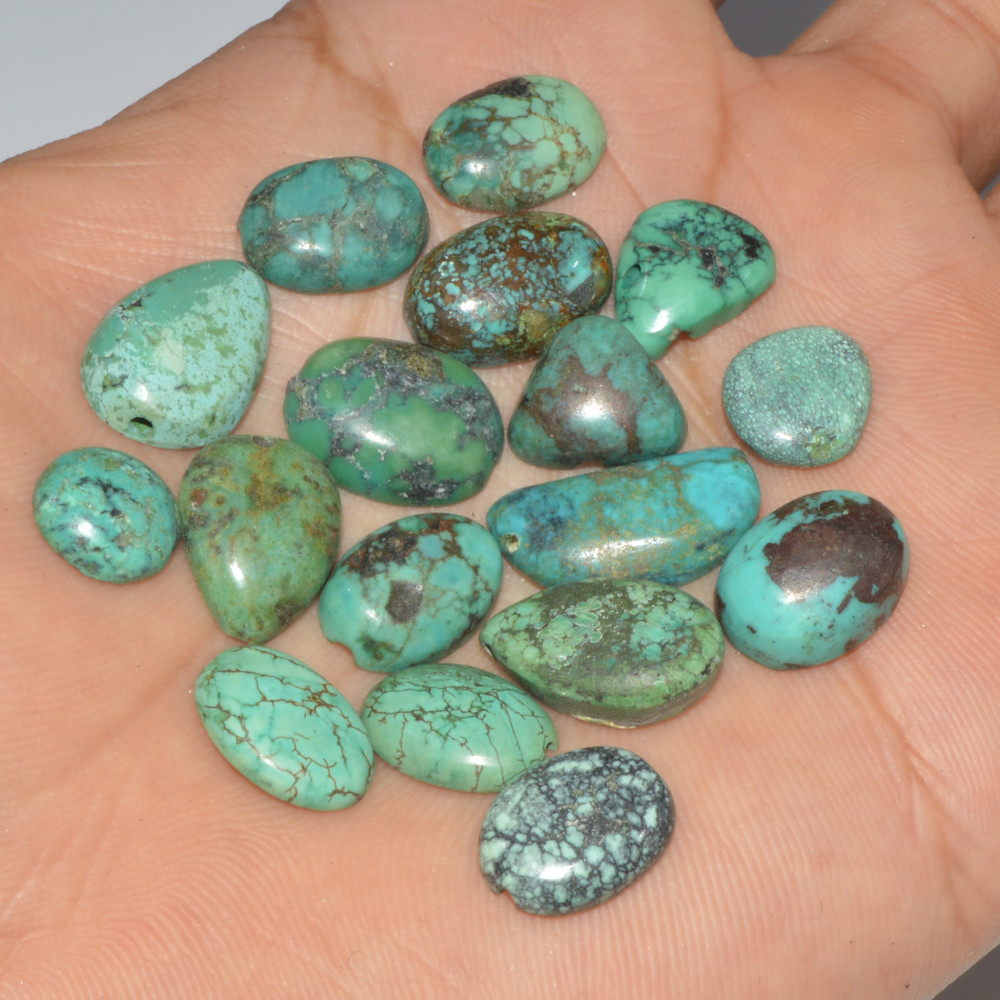 17 Pcs 74Cts Natural Tibetan Turquoise Cabochon Loose Gemstone 18x8 9x9mm #16348