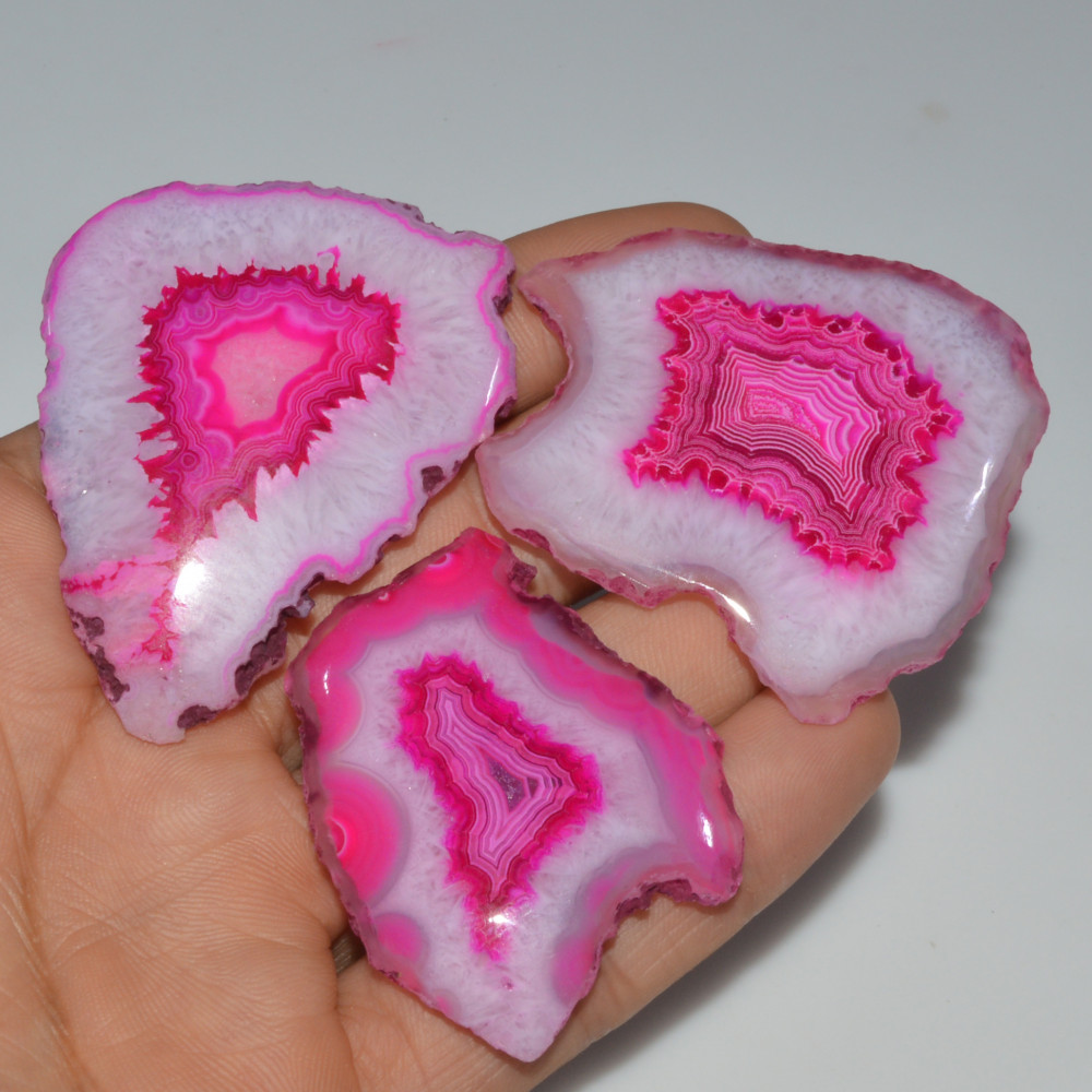 3 Pcs 336 Cts Natural Agate Silces Gemstone Lot 58x43 44x32mm #3363