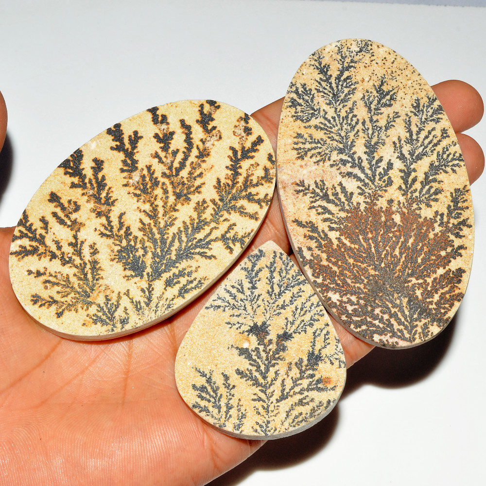 3 Pcs 504 Cts Natural Psilomelane Dendrite Agate Druzy Loose Gemstone Crystal Healing Mixed Shape For Jewelry Making 90x50 54x43mm #16793