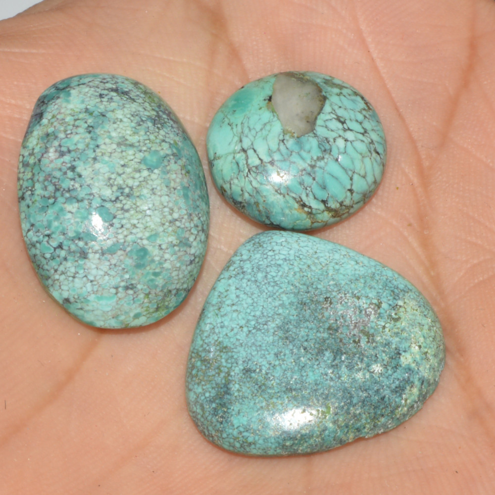 3Pcs 54Ct Natural Tibetan Turquoise Cabochon Loose Gemstone 24x15 15x15mm #16356