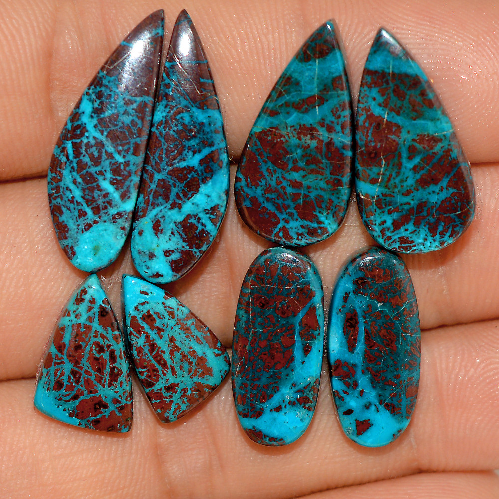 4 Pairs 51 Cts Natural Green Chrysocolla Cabochon Pair Lot Chrysocolla Dangle Drop Silver Earrings Jewelry For Women 24x6 14x7mm #16977