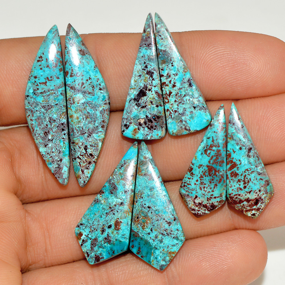 4 Pairs 73 Cts Natural Green Chrysocolla Cabochon Pair Lot Chrysocolla Dangle Drop Silver Earrings Jewelry For Women 35x8 25x10 mm #16984