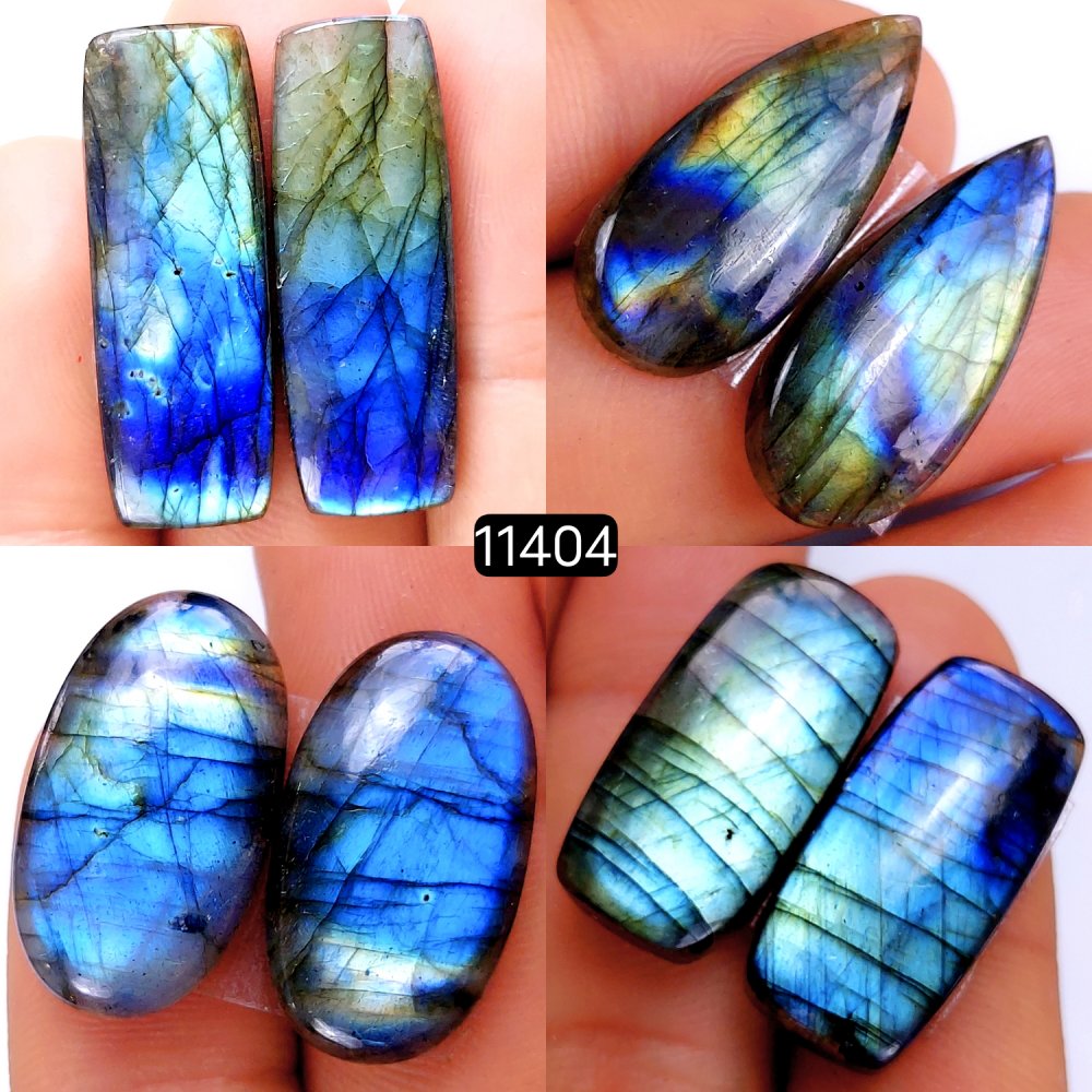 4 Pairs 138Cts Natural Labradorite Loose Cabochon Flat Back Gemstone Pair Lot Earrings Crystal Lot for Jewelry Making Gift For Her 32x10-25x14mm #11404