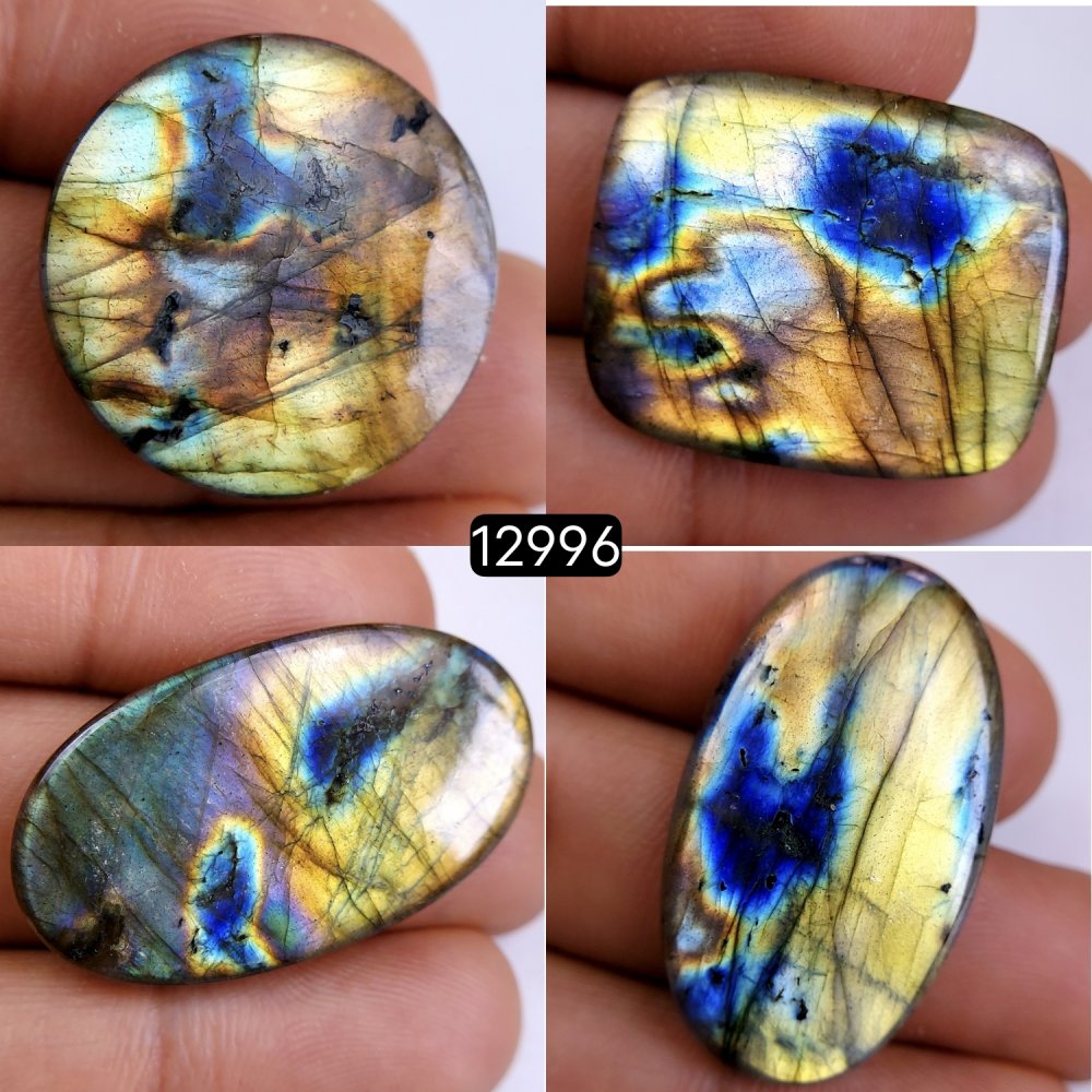 4 Pcs 204 Cts Natural Blue Labradorite Gemstone Cabochon Semi Precious Wholesale Lot Handmade Jewelry Making Supplies Pendant For Her 32x22-51x37mm#R-13001