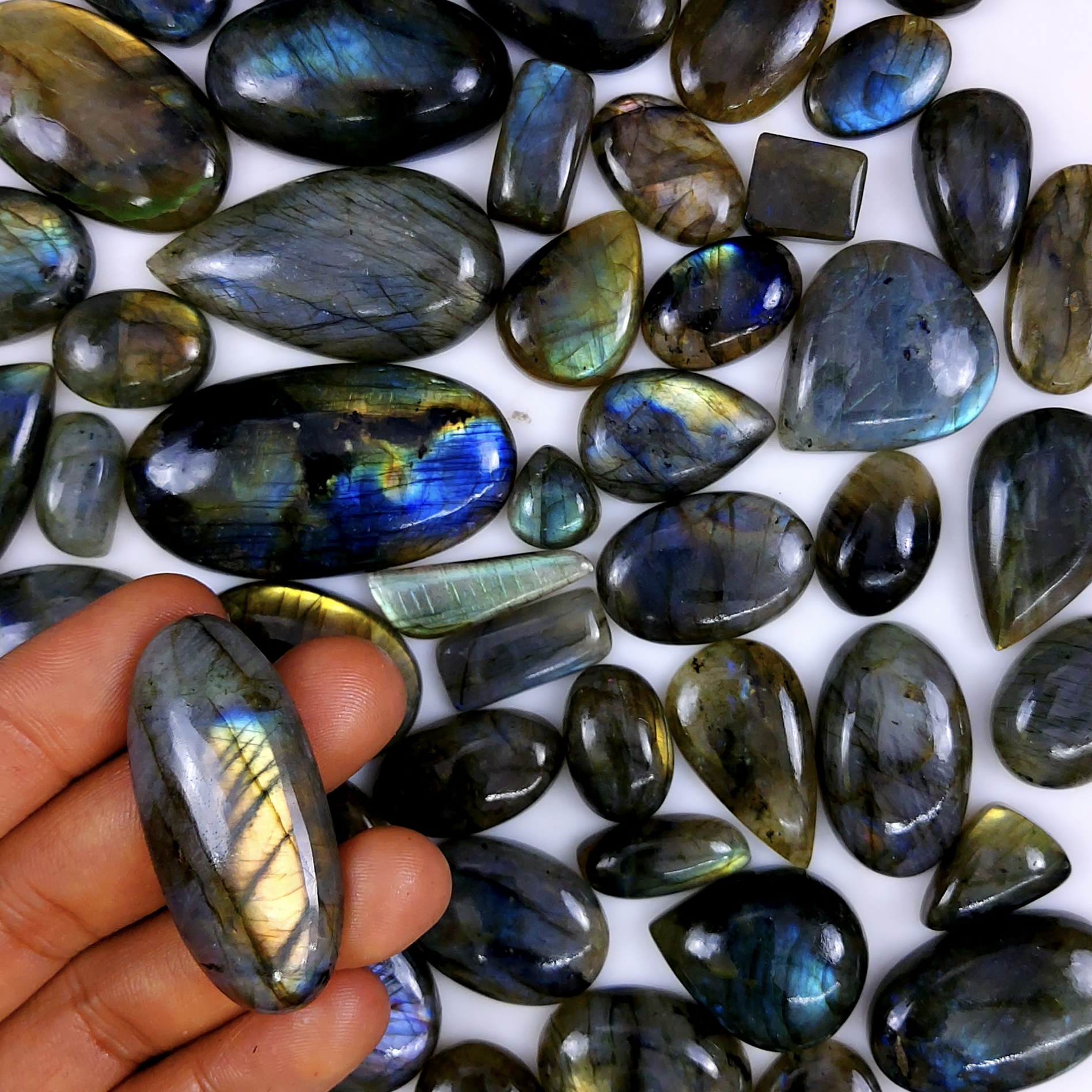 55pc 1757Cts Labradorite Cabochon Multifire Healing Crystal For Jewelry Supplies, Labradorite Necklace Handmade Wire Wrapped Gemstone Pendant 48x26 18x14mm#6348