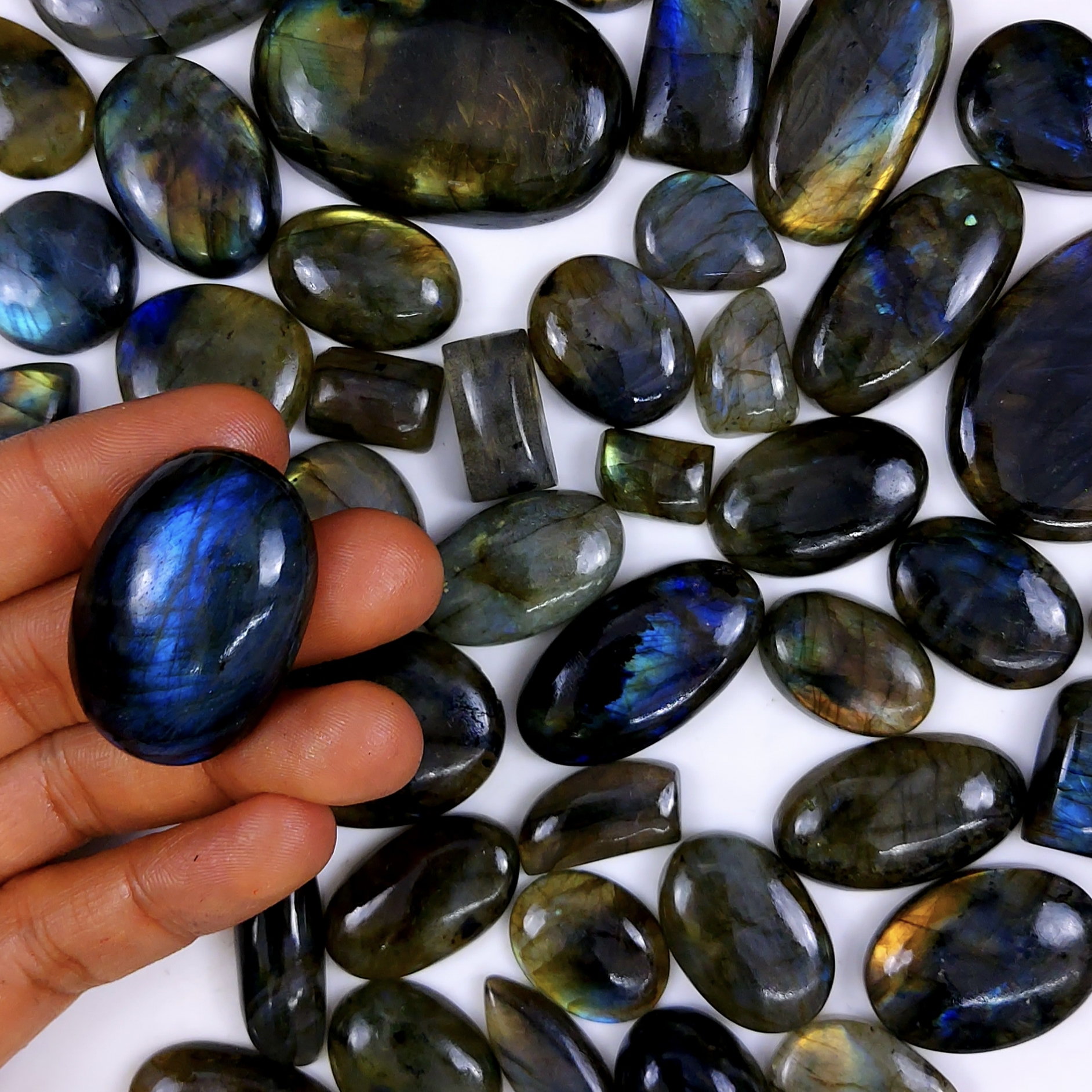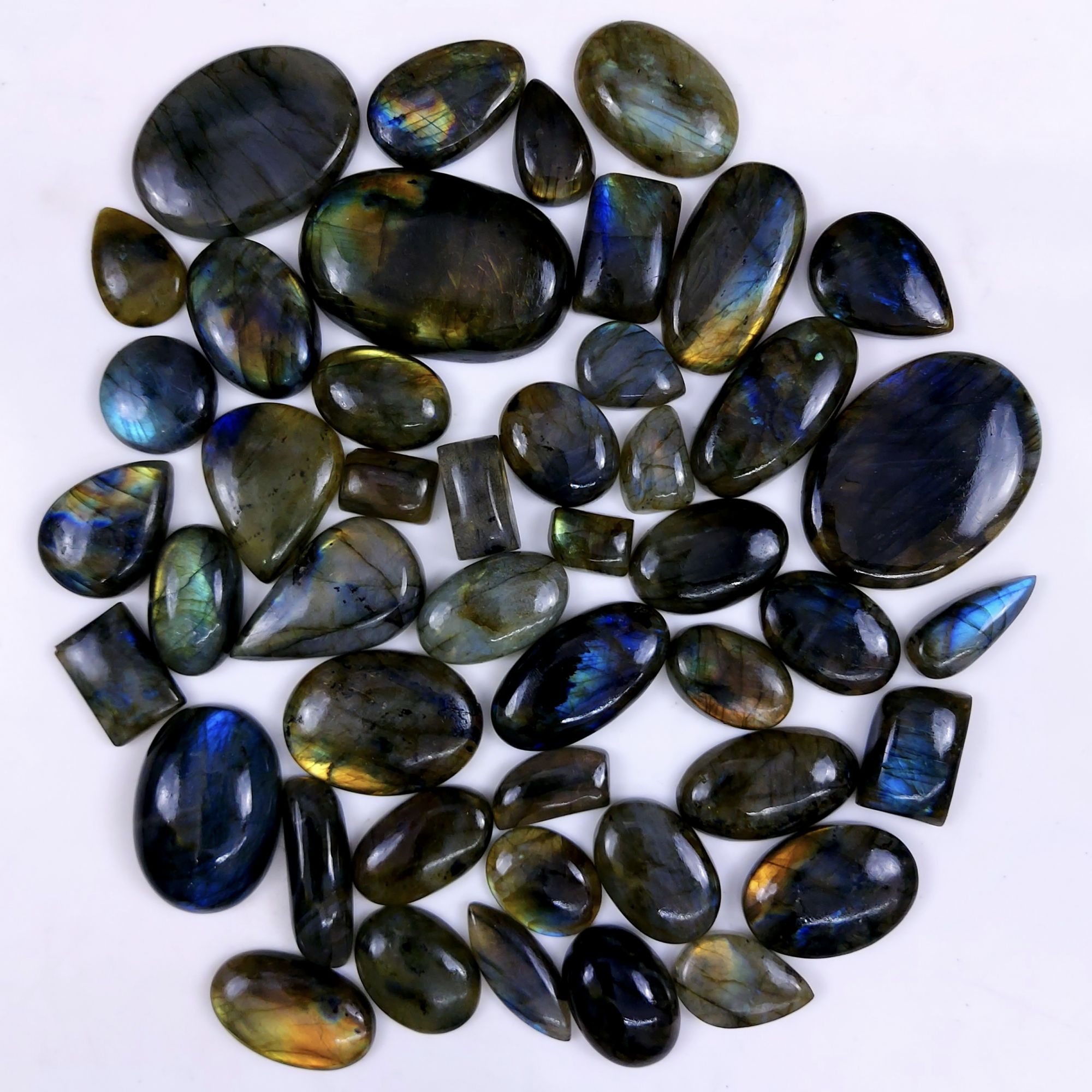 46pc 1723Cts Labradorite Cabochon Multifire Healing Crystal For Jewelry Supplies, Labradorite Necklace Handmade Wire Wrapped Gemstone Pendant 55x35 22x16mm#6349