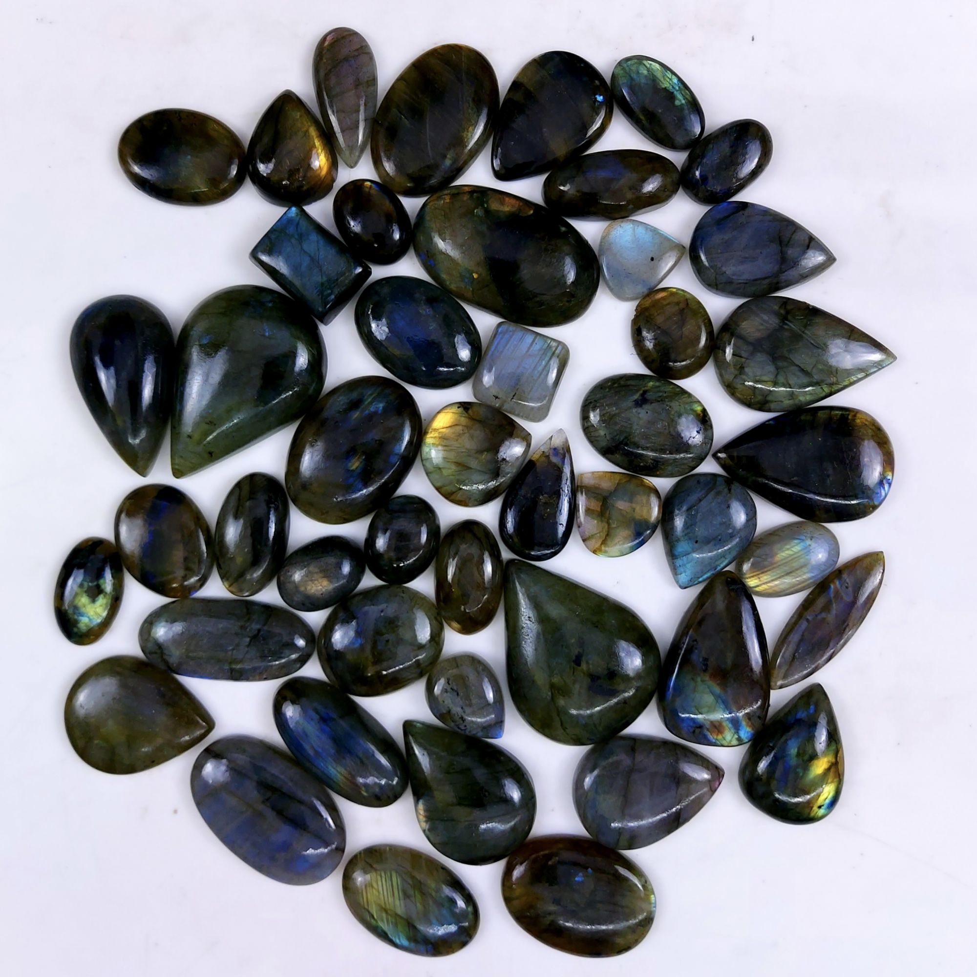47pc 1545Cts Labradorite Cabochon Multifire Healing Crystal For Jewelry Supplies, Labradorite Necklace Handmade Wire Wrapped Gemstone Pendant 44x30 20x14mm#6393