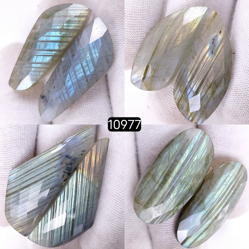 4Pairs 164Cts Natural Labradorite Cabochon Pairs Loose Gemstone Earrings Crystal Lot for Jewelry Making Gift For Her 42x16 32x12mm #10977
