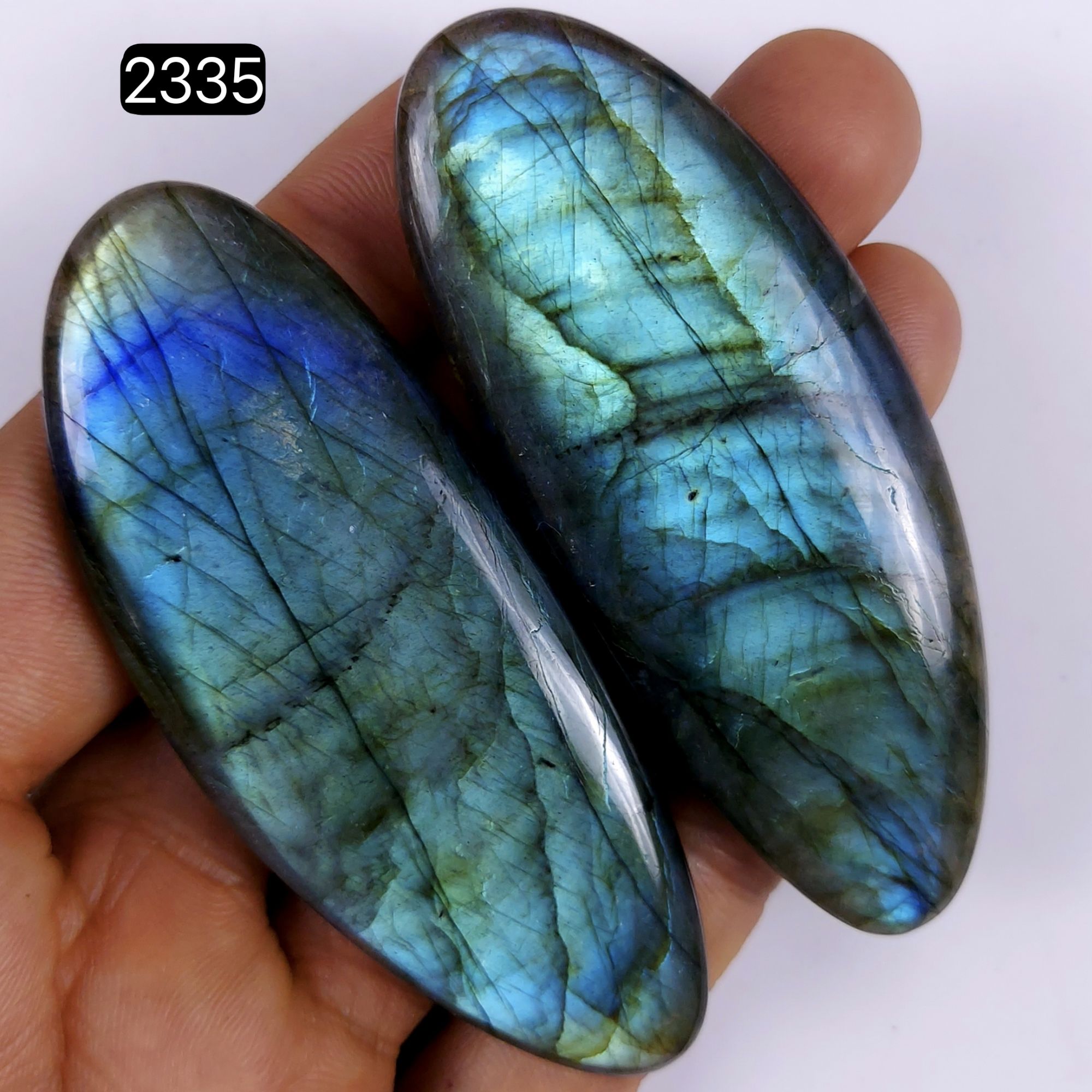 Natural Labradorite Cabochon Multifire Loose Gemstone Pairs For Jewelry Making 317Cts 76x28mm#2335