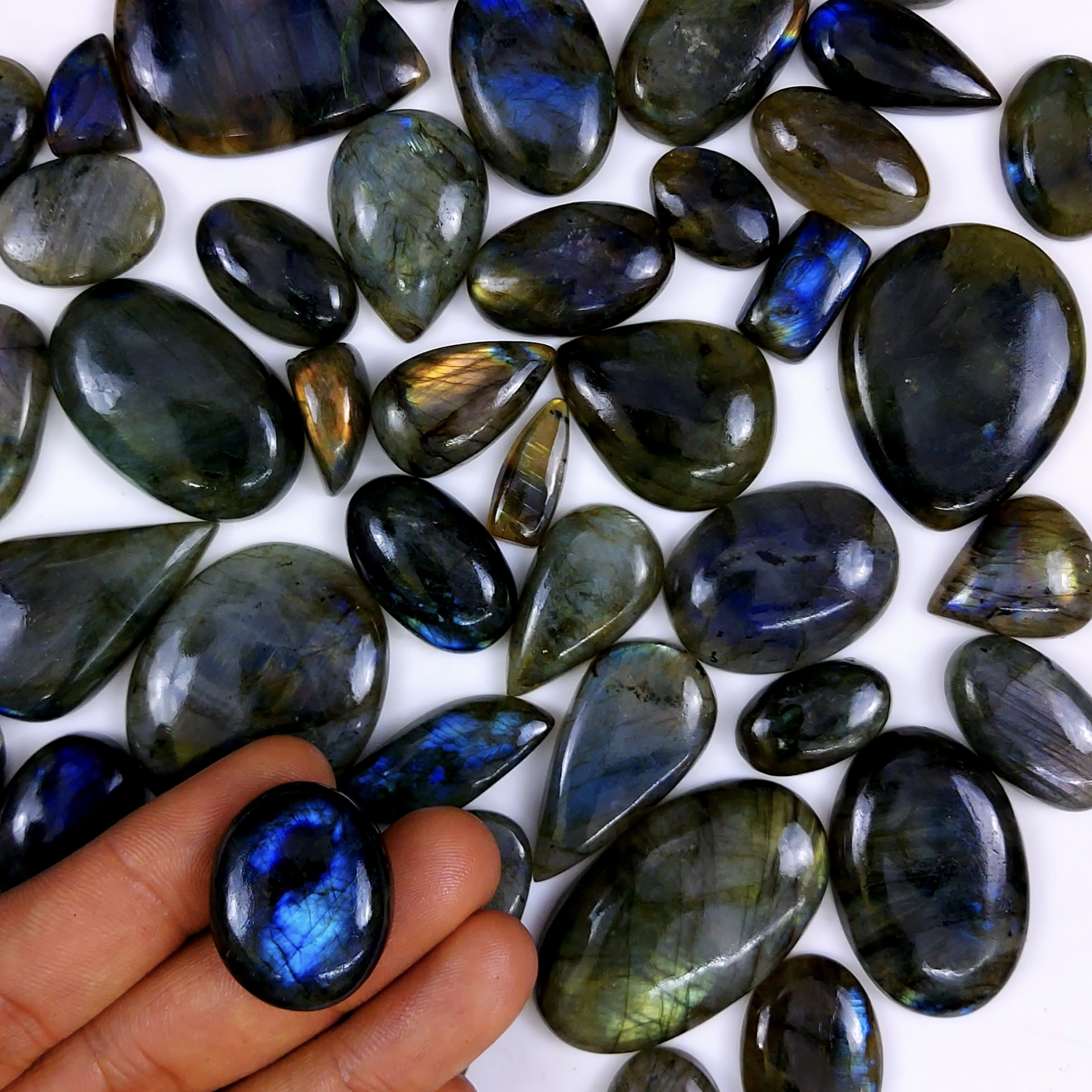 48pc 1765Cts Labradorite Cabochon Multifire Healing Crystal For Jewelry Supplies, Labradorite Necklace Handmade Wire Wrapped Gemstone Pendant 40x35 16x13mm#6351