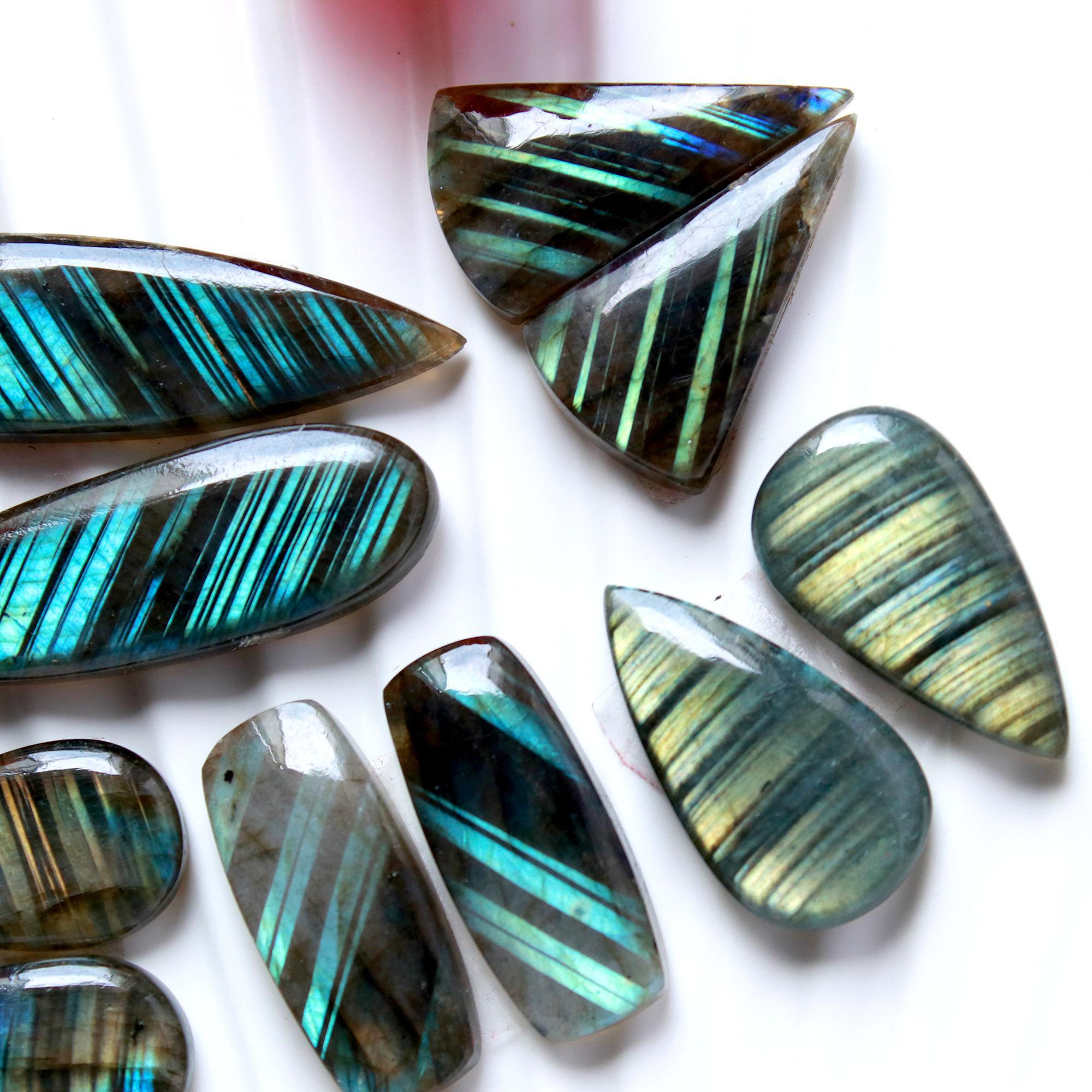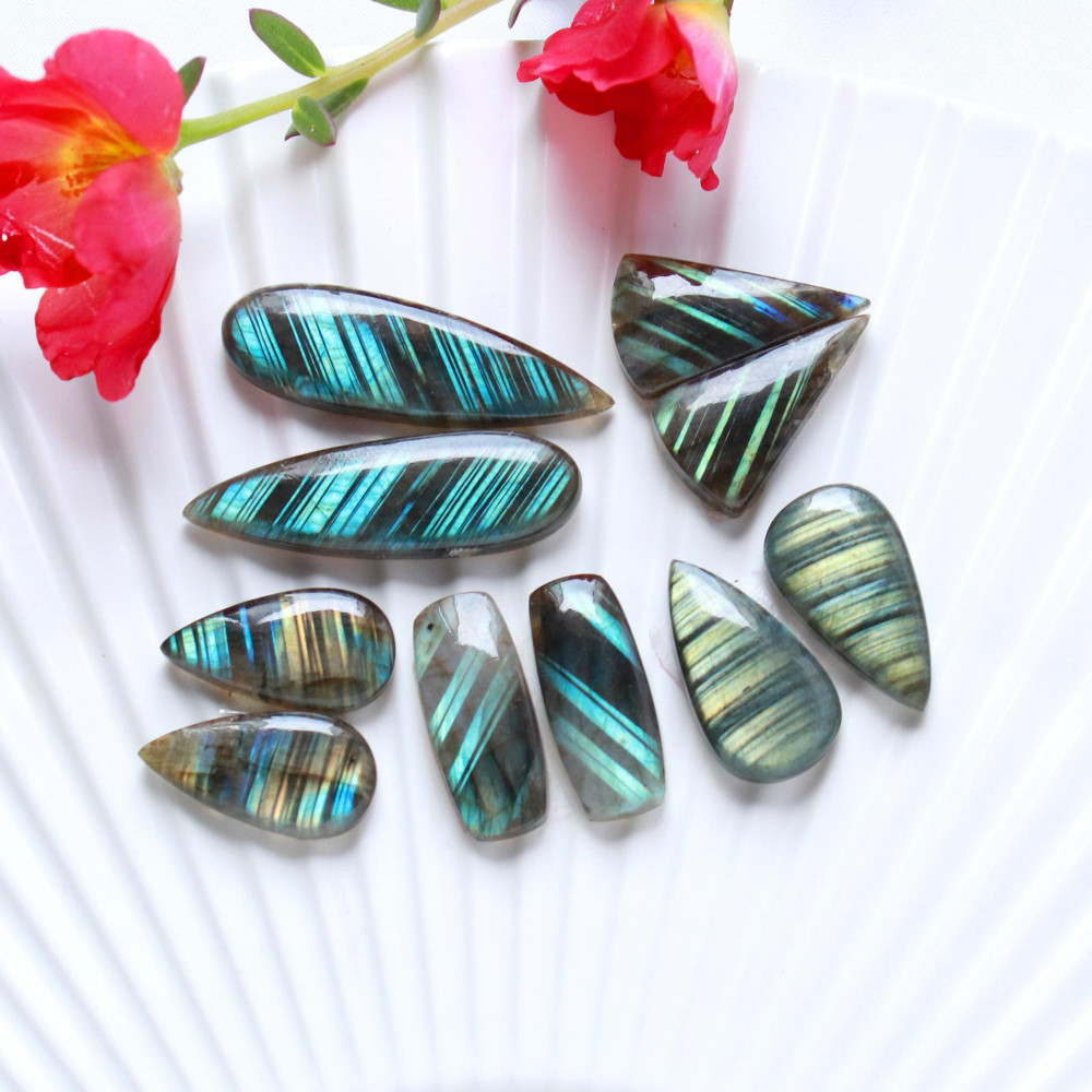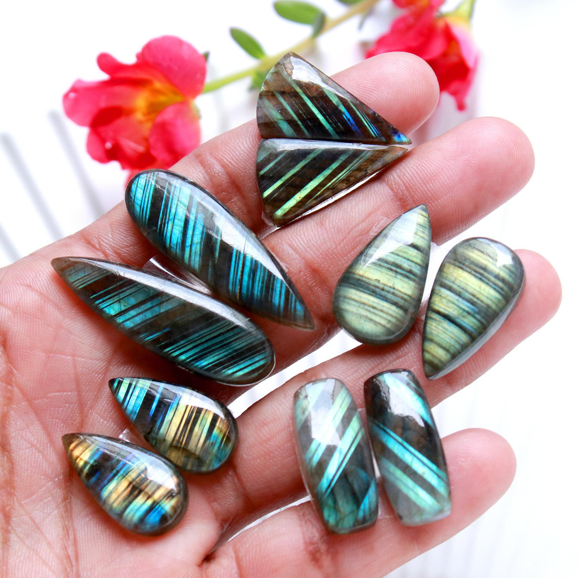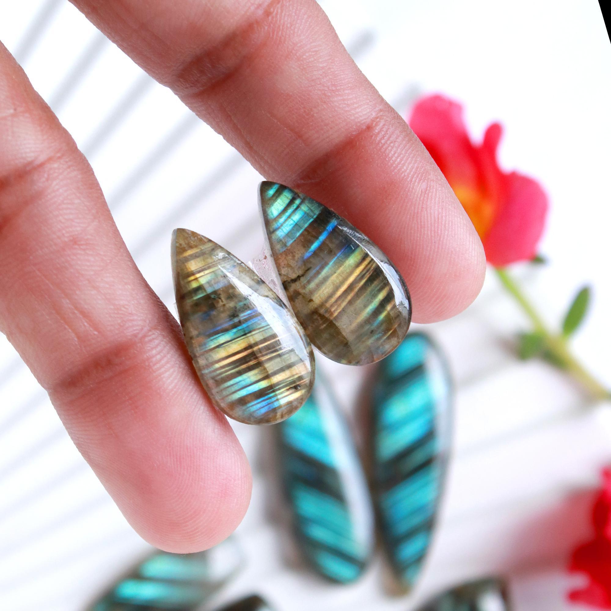 5Pairs 138Cts Natural Labradorite Cabochon Pair For Earrings, Labradorite Gemstone Cabochon Crystal For Womens Earring 38x10 22x10mm #15786