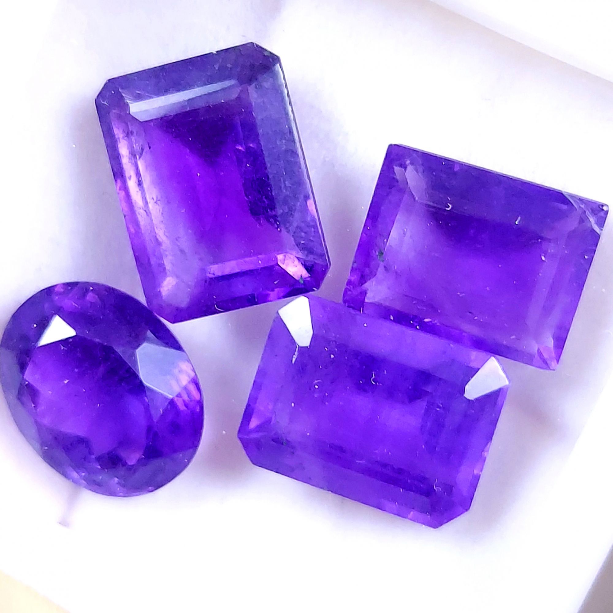 4Pcs 45Cts Natural Purple Amethyst Faceted Cabochon Gemstone Lot Mixed Shapes And Sizes For Jewelry Making 16x12 14x11mm#10513