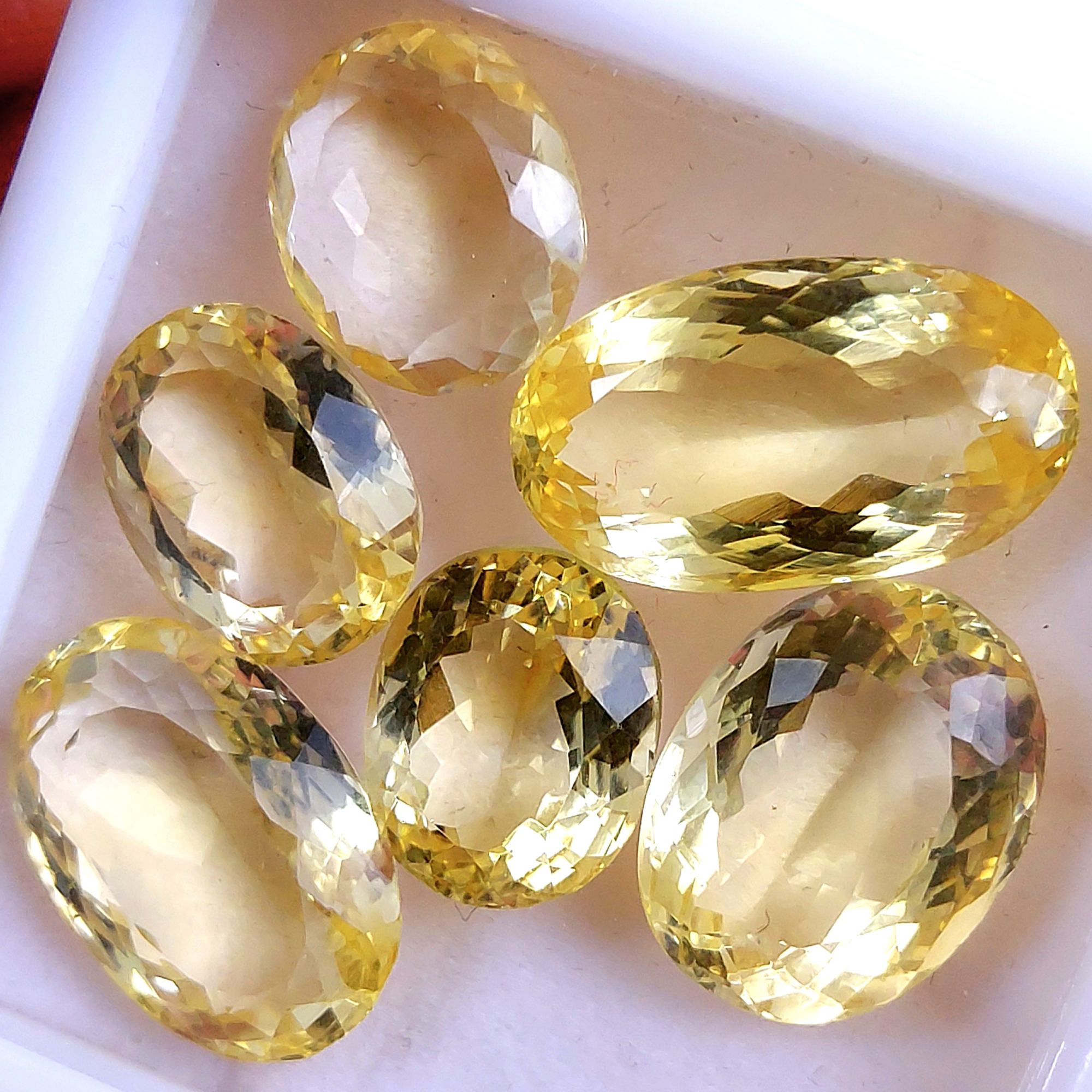 6Pcs 62Cts Natural Yellow Citrine Faceted Cabochon Loose Gemstone Semi Precious Rose Cut Jewelry Making Crystal Lot 20x11 13x11mm #10585