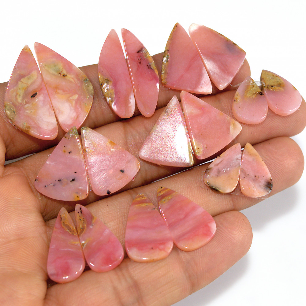 9 Pairs 75 Cts Natural Pink Opal Slice Pairs Loose Gemstone Crystal Healing Mixed Shape For Jewelry Making 25x10 14x7mm #16837
