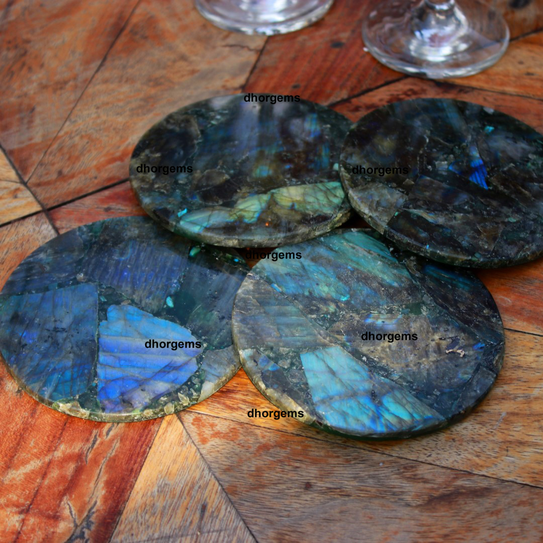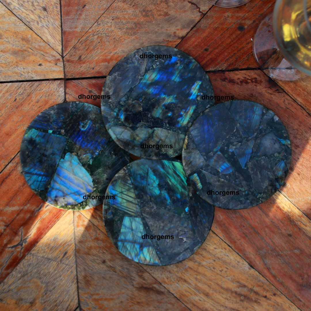 Natural Labradorite 3.5 " Round Coaster Gemstone Bar Coaster Housewarming Coasters