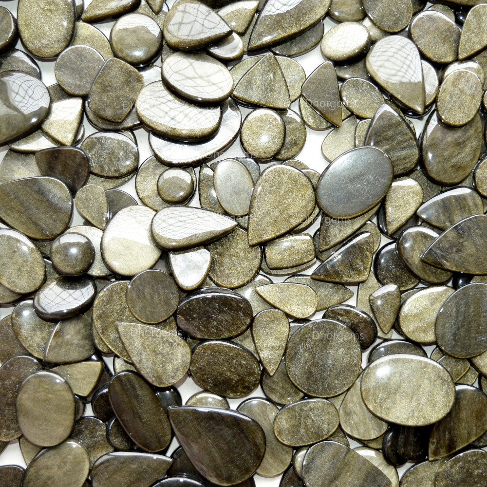 Natural Silver Obsidian Cabochon Gemstone Lot For Jewelry Making Mixed Sizes and Shapes Wholesale Silver Obsidian Healing Crystals